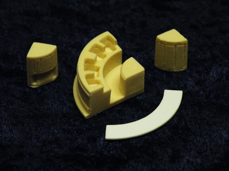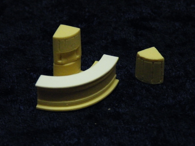 Resin Castings with styrene countertop. Includes two different center cabinet tops. Styled after corner bars in Southern Pacific and Rock Island Coffeeshop cars. Can be used in Lounge cars, Cafe cars, Coffeeshop cars, Club cars and Tavern cars.