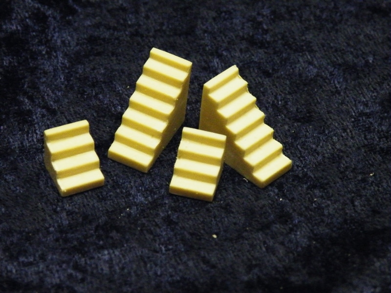 Resin Castings. Two sizes of stairs, for wherever you need them. Construction Note: Steps can be cemented to spacers to create longer stairways.
