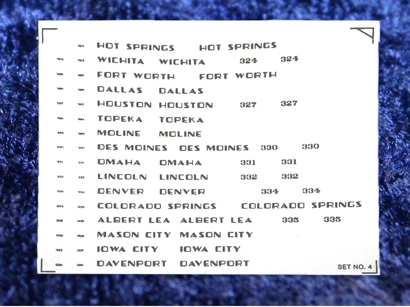 Black car names and numbers for post WWII streamlined Pullman built coaches, plan #7522, lot #6764.
