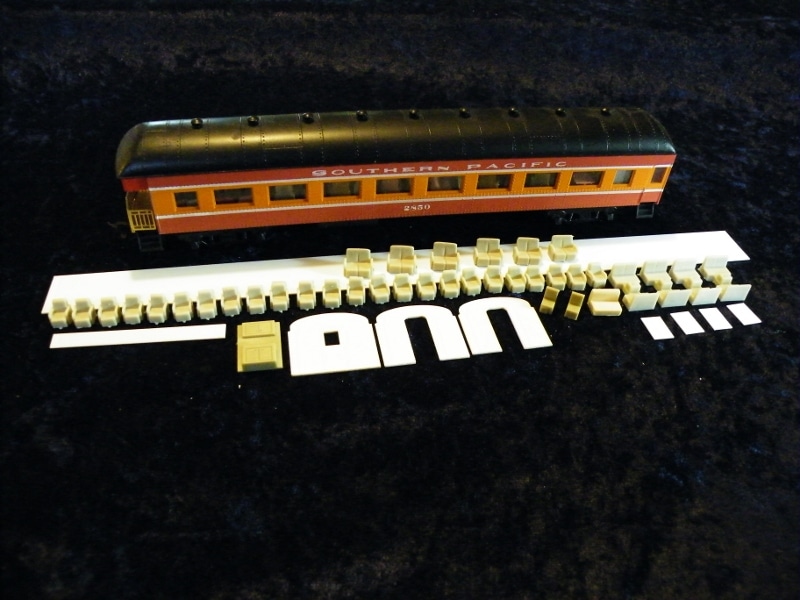 Contains lounge chairs and styrene strip with which to make partitions. (no floor/weight needed for these kits)Â (Kit does not include car pictured below)