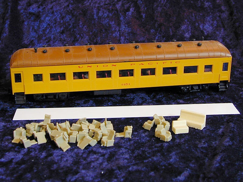 Contains parlor chairs and styrene strip with which to make partitions. (no floor/weight needed for these kits)Â (Kit does not include car pictured below)