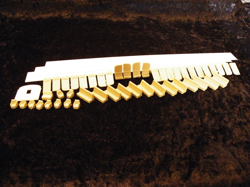 Contains enough berths for up to13 Bedrooms, berths for up to 22 Roomettes, 10 lounge seats,a vestibule bulkhead, and styrene strip with which to make partitions.