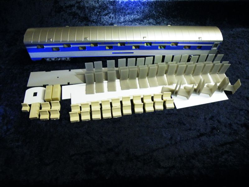 Contains floor weight, berths, room partitions, vestibule bulkheads and styrene strip with which to make partitions.