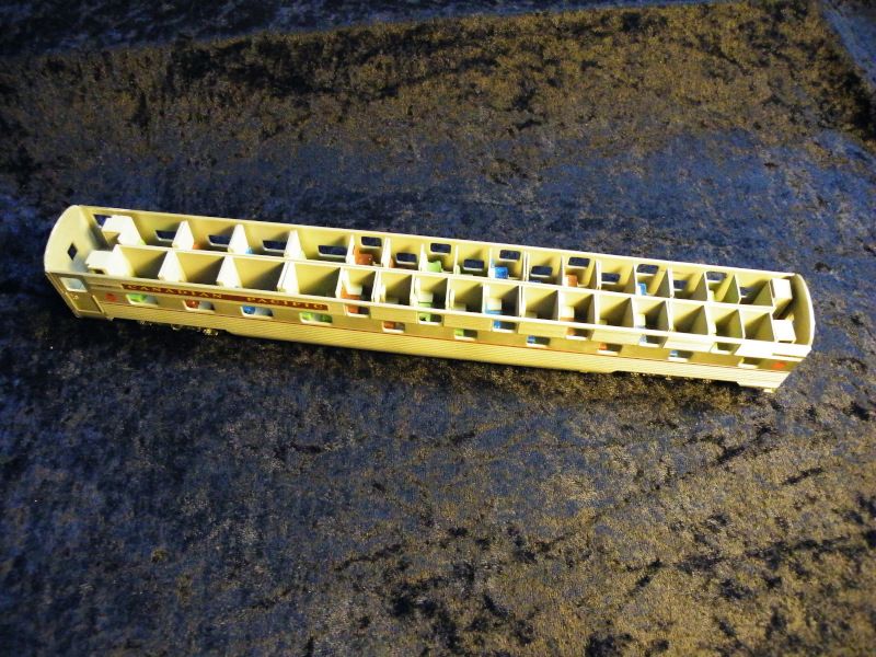 Contains roomette berths, room partitions, hoppers, vestibule bulkheads, floor/weight and styrene strip with which to make partitions.